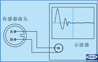 接入示波器,A接芯極,B接地,